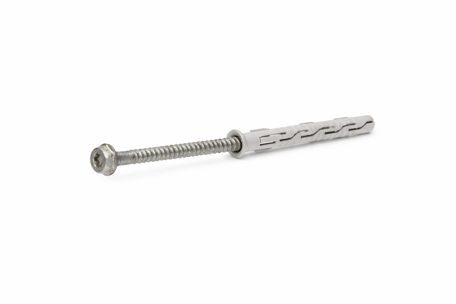 Kialakítás: A szett egy kiváló minőségű (általában poliamid/nylon) peremes dübelből és egy előszerelt, horganyzott acél csavarból áll.